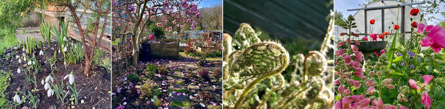 The most frequent of them has been my love and caring for the Allotment. When Quiet last visited, early in February, the Winter was thinking of ending and the snowdrops had just shown up. Since when? Well rather than go all Monty Don on you I’ll include a few photographs next to this writing of what the constant gardening, the noticing and trying of new things out has come to look like. Easily the best and most fulfilling garden I’ve ever been involved in making.